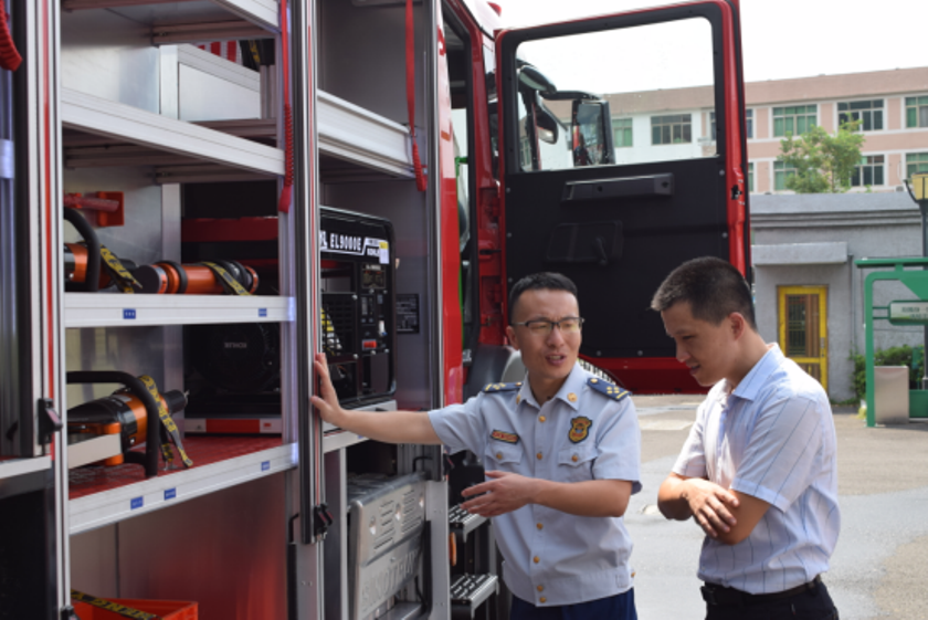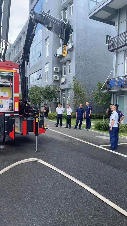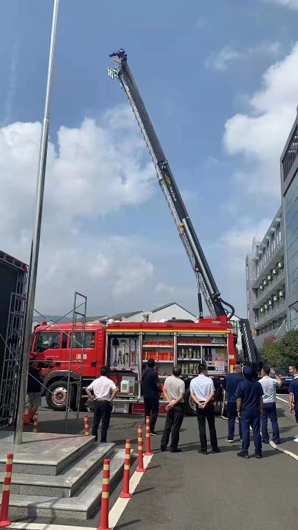 演示結(jié)束后,鎮(zhèn)政府各級領(lǐng)導(dǎo)及平陽縣大隊領(lǐng)導(dǎo)來到新購的舉升搶險主戰(zhàn)消防車前,詳 細(xì)參觀、了解消防車輛技術(shù)性能,觀摩了新型消防車輛器材的展示和車輛各種功能操作 演示,并對我公司研制的新產(chǎn)品進(jìn)行了點評,給予了高度的贊許,稱此款車型最大化的 滿足了老舊小區(qū)、狹窄街道、城鄉(xiāng)低建筑物等滅火救援工作的需要。