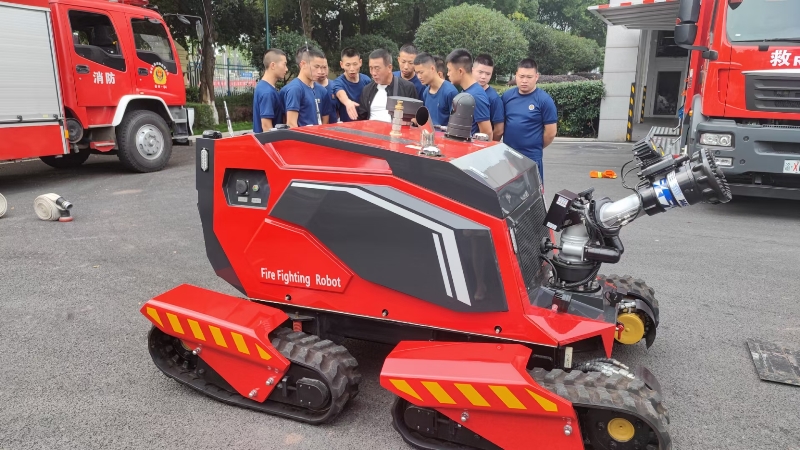 在演示活動上,我公司自主研發(fā)的全地形消防滅火機器人,通過全程智能化遙控操作,可以更好的完成現(xiàn)場救災滅火任務。四履帶獨立驅(qū)動,可以全地形移動,360度原地調(diào)頭,同時還可以實現(xiàn)高空出水等諸多高難度動作,具有靈活、高效、安全的特點。