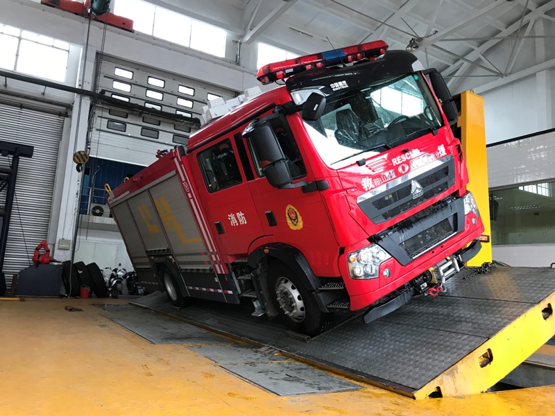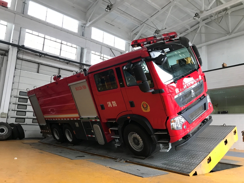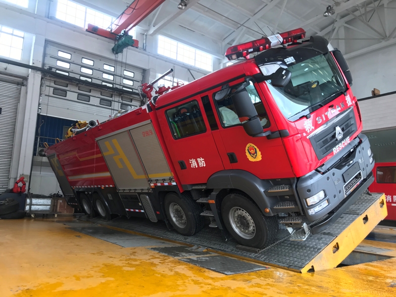 車輛底盤為ZZ5207TXFV471GF5底盤,發(fā)動機型號MC07H.35-60,功率為257kw,國六排放標(biāo)準(zhǔn),軸距4500mm,罐體材質(zhì)采用采用優(yōu)質(zhì)304不銹鋼板,容罐容量:水3600kg+B類泡沫900kg+A類泡沫200kg;消防泵為KSP1000(美國大力);壓縮空氣泡沫系統(tǒng):品牌:美國大力,型號:KSPBC1000/220型,型式:全自動集成式壓縮空氣A類泡沫系統(tǒng),消防炮為PLKD48手動及電控,升降照明系統(tǒng)YZH6-4.83CFA,牽引絞盤系統(tǒng)為杭州天銘FHW16500 整車器材箱卷簾門防水槽采用專用鋁合金開模型材,型材上加裝LED照明燈帶,使整車形成環(huán)繞式照明,既美觀且照明效果又好。器材箱卷簾門下部翻轉(zhuǎn)踏板,采用一體式鋁合金擠壓型材,模塊化組裝,增加了整車的品質(zhì)。箱體內(nèi)部器材框架采取了專用的的擋板型材,有效的保證了內(nèi)部器材固定的穩(wěn)定性,同時使器材標(biāo)牌整齊化一,清晰明了。壓縮空氣系統(tǒng)采用美國大力集成式系統(tǒng),結(jié)構(gòu)緊湊、性能優(yōu)良、操作簡便統(tǒng)一空間利用率高??諌簷C流量為國內(nèi)目前CAFS系統(tǒng)中最大流量,可達105L/S,更好地滿足于壓縮空氣泡沫系統(tǒng)性能需求。