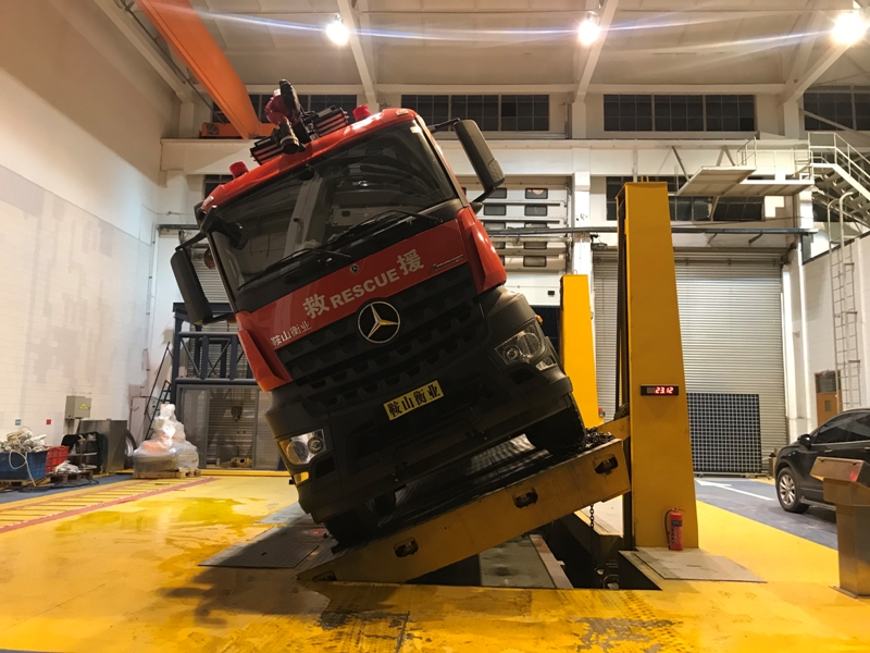 車輛底盤為德國奔馳Arocs4158底盤,發(fā)動機型號OM473LA,功率:425kw,國六排放標(biāo)準(zhǔn),軸距:1750mm+4600mm+1350mm,罐體材質(zhì):采有優(yōu)質(zhì)不銹鋼板304;容罐容量:水15000kg,泡沫3000kg;消防泵為美國大力,型號為ZSP2650;流量:10000L/min;負壓式泡沫比例混合器,型號為英國FSA;舉升臂頂端消防炮Ⅰ,型號:3482+5177美國阿密隆,流量80L/S,射程:水≥80m,泡沫≥70m;車體尾部消防炮Ⅱ,型號:DICODOPLUS 150法國博克,流量:10000L/M,射程:水≥110 m,泡沫≥100m,大流量消防槍,車頂前部設(shè)有舉升高度為12米的臂架。 整車器材箱卷簾門防水槽采用專用鋁合金開模型材,型材上加裝LED照明燈帶,使整車形成環(huán)繞式照明,既美觀且照明效果又好。車頂前部設(shè)有舉升高度為12米的臂架,頂端加裝有進口電控消防炮。車頂后部設(shè)有進口電控大流量消防炮。箱體內(nèi)部器材框架采取了專用的的擋板型材,有效的保證了內(nèi)部器材固定的穩(wěn)定性,同時使器材標(biāo)牌整齊化一,清晰明了。車頂兩側(cè)女兒墻內(nèi)部加裝有LED照明燈帶,可滿足夜間工作人員在車頂操作時對照明需求。配備大流量消防槍,可噴射水、泡沫、等滅火介質(zhì),滅火效率極高。