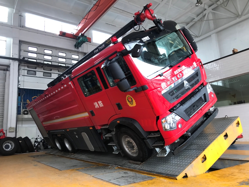 車輛底盤為豪沃ZZ5357TXFV464MF5底盤,發(fā)動機型號MC11.46-61,功率:341kw,國六排放標(biāo)準(zhǔn),軸距4600+1400mm,罐體材質(zhì):優(yōu)質(zhì)碳鋼板;容罐容量:水18000kg;消防泵為上海雄真CB10/80-XZ;消防炮為威斯特PSKD60W,舉升高度10.5米。 車輛外觀造型美觀,且內(nèi)部空間寬敞舒適,滿足作戰(zhàn)人員需求。整車器材箱卷簾門防水槽采用專用鋁合金開模型材,型材上加裝LED照明燈帶,使整車形成環(huán)繞式照明,既美觀且照明效果又好。器材箱卷簾門下部翻轉(zhuǎn)踏板,采用一體式鋁合金擠壓型材,模塊化組裝,增加了整車的品質(zhì)。箱體內(nèi)部器材框架采取了專用的的擋板型材,有效的保證了內(nèi)部器材固定的穩(wěn)定性,同時使器材標(biāo)牌整齊化一,清晰明了。